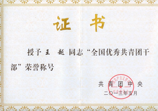 1、201353日,根據《共青團中央關于表彰2012年度“全國優秀共青團員”、“全國優秀共青團干部”、“全國五四紅旗團委(團支部)”的決定》(中青發[2013]8號),集團公司團委書記王越榮獲2012年度全國優秀共青團干部榮譽稱號。