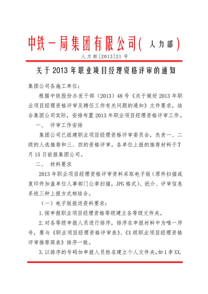 集團公司關于2013年職業(yè)項目經(jīng)理資格評審的通知