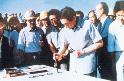 李鵬委員長視察中鐵一局承建的甘肅引大入秦水利工程