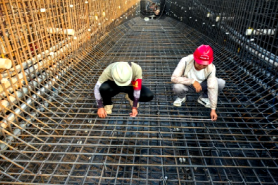 在橋梁施工過程中,項目管理人員嚴格實施三檢(工前檢查、工中檢測、工后檢驗)、三控制(施工工藝、原材料、配合比控制),有效消除了各類質量隱患,確保了橋梁質量“內實外美”。作業人員嚴格按照設計圖紙和規范要求進行鋼筋綁扎操作,確保鋼筋間距、數量、連接方式等符合質量標準。在混凝土澆筑環節,對混凝土的配合比進行了反復試驗和優化,同時采用先進的振搗設備和科學的振搗工藝,確保混凝土的密實度和強度。此外,對模板安裝、拆除等工序也進行了嚴格的質量檢查,有效防止漏漿、變形等質量問題的發生。
