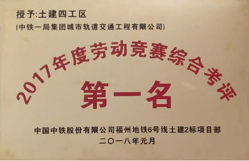 (祝賀福州地鐵6號(hào)線土建2標(biāo)4工區(qū)喜獲標(biāo)段2017年度綜合考評(píng)第一名)