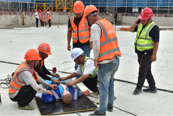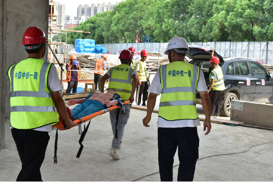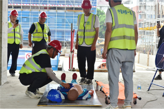 項(xiàng)目工期緊,任務(wù)重,夏季作業(yè)易出現(xiàn)中暑。為此,項(xiàng)目部詳細(xì)制定了高溫群體中暑應(yīng)急預(yù)案,并在活動中開展了應(yīng)急演練。演練中,應(yīng)急領(lǐng)導(dǎo)小組迅速組織動員,醫(yī)療救護(hù)組、警戒聯(lián)絡(luò)組、后勤保障組各司其職,緊密配合,作業(yè)人員匯報及時,臨時急救得當(dāng),贏得業(yè)主及附二院醫(yī)生的認(rèn)可。徐懷洲在點(diǎn)評中表示,項(xiàng)目部前期策劃周密、演練絲絲入扣、效果良好。他要求項(xiàng)目部要“真演真練”促實(shí)操實(shí)干,確保夏季施工安全萬無一失。本次演練在檢驗(yàn)預(yù)案可操作性的同時,為觀摩的工友也上了一堂沉浸式體驗(yàn)課。