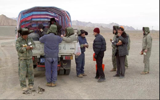 同樣是冬天,1998年1月,干邯濟線時候,因為施工環境受限,必須跨過河面放線施工,在緊急情況下,郭宏新想都沒想,冒著嚴寒,脫掉衣服,拿著線纜從河中游了過去,順利把線架好。還有2003年干青藏線項目的時候,風沙大,工期緊,施工現場離項目駐地較遠,為提高效率午飯都是在現場匆忙解決,經常會吃到沙子。