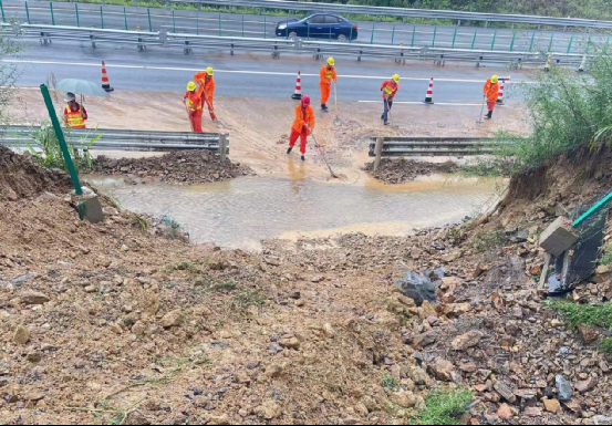 廣西的天氣多變,受季風氣候和地形地貌的影響,經常出現暴雨和滑坡等自然災害,不僅威脅到高速公路的安全,還會造成交通擁堵和事故,給人民生命財產帶來嚴重損失。在這樣的情況下,“青年突擊隊”始終堅守一線,沖鋒在前。當發生突發情況,突擊隊員們都會不畏風雨,迅速趕赴現場進行勘察和搶險,他們會根據山體滑坡垮塌程度、垮塌位置、道路影響程度選擇應急預案、劃定安全區域,同時積極協調施工機械和物資,做好現場安全管理和交通疏導,確保施工搶險順利進行。一次,項目養護區段突發山體垮塌,“青年突擊隊”立刻行動,青年安全員陳昆扎根現場,做好安全把控,指揮往來車輛,為施工安全保駕護航,其他突擊隊員也都各司其職,高效作業,在大家的攜手努力下,原定三個工日完成的垮塌搶險任務,僅用了一個半日就得到的完美解決,他們用實際行動展示了項目的高效管理,更展示了企業的施工實力和良好形象,贏得了業主的高度肯定。