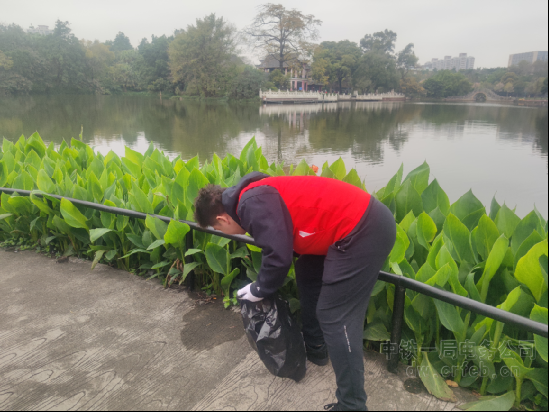 四公司西安東站項目的志愿者為灞橋生態濕地公園來了一次“美容保養”。他們左手拿著垃圾袋,右手拿著夾子、掃地等器具仔細搜尋著地上的垃圾,認真的為公園除去每一處污漬。