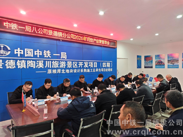 1月15日,中鐵一局八公司景德鎮(zhèn)分公司組織召開2026年第一次生產(chǎn)經(jīng)營管理會(huì),全面部署新一年生產(chǎn)經(jīng)營各項(xiàng)工作。分公司經(jīng)理田飛、黨支部書記石大利、各項(xiàng)目領(lǐng)導(dǎo)班子成員等共計(jì)26人參加會(huì)議,會(huì)議由分公司總工程師楊輝主持。