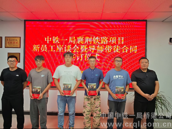 9月9日,中鐵一局襄荊鐵路項目組織召開新員工座談會暨導師帶徒簽約儀式,項目部和各工區領導班子、導師以及13位新員工參加。