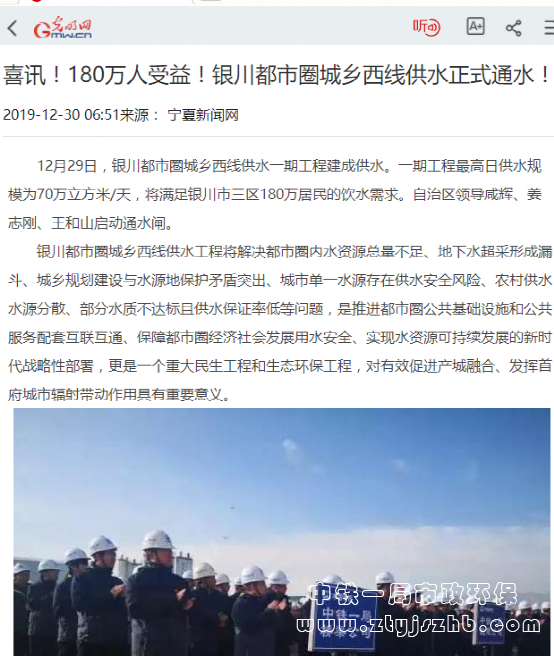 中國政府網報道:銀川都市圈城鄉西線供水工程項目通水