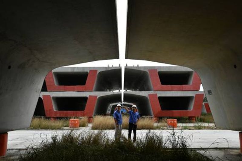 6月23日,在制梁場工地見到馬建市時,他正跟兩名技術員,一邊說一邊比劃著,腋下夾著一本藍皮資料。