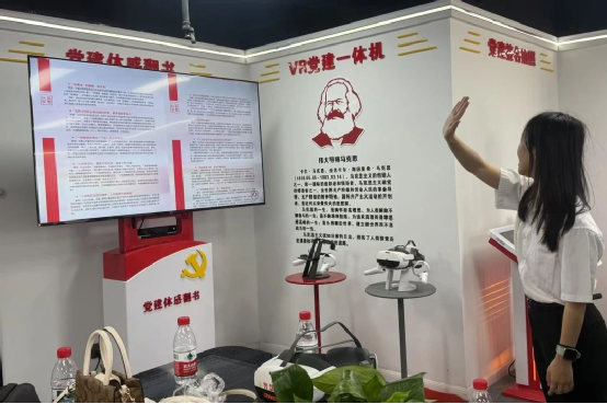 在黨建體感翻書區域,團員青年們親身體驗了現代科技與黨建元素的深度融合。無需手動翻閱,僅通過簡單的體感操作,黨的歷史知識、重大事件便在眼前徐徐展開。