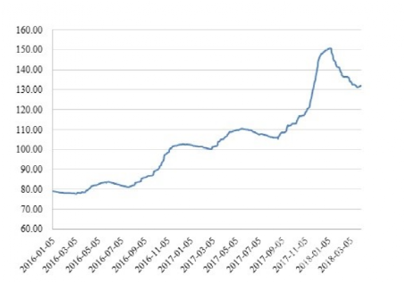 全國水泥價格經(jīng)過2016、2017年的扶搖直上,2018年1月上旬達(dá)到高點后開啟下跌,1-3月中旬持續(xù)下跌,3月末全國水泥價格指數(shù)為132.03點,相比2018年初下跌了12.09%,但相比去年同期仍有25.48%的漲跌。