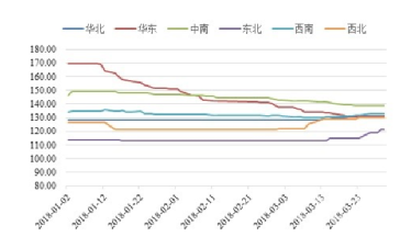 圖3:2018年一季度各區(qū)域水泥價格指數(shù)