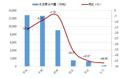全國六大區(qū)域中水泥累計產(chǎn)量均同比下滑,東北、華北和西北地區(qū)水泥產(chǎn)量急劇下滑,其中東北和華北地區(qū)自2017年起增速就持續(xù)下滑,西北地區(qū)自2017年6月份增速轉(zhuǎn)正為負(fù)后一路下滑。西南地區(qū)從2017年下半年開始下滑,華東和中南地區(qū)從2017年底開始下滑。