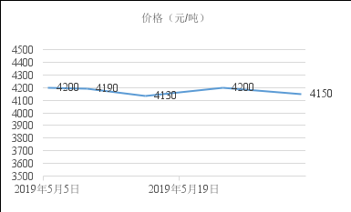 2019年5月份,國內鋼價震蕩走低,累計跌幅在150-200元/噸,其中下半月跌幅有所放大。下圖為西安地區螺紋鋼HRB400EФ20mm價格走勢。